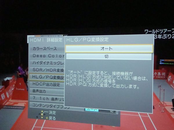 これ、「あんたの再生機器がHDR信号に対応して無いんで、SDRに変換しておくから」っていう表示だそうな。